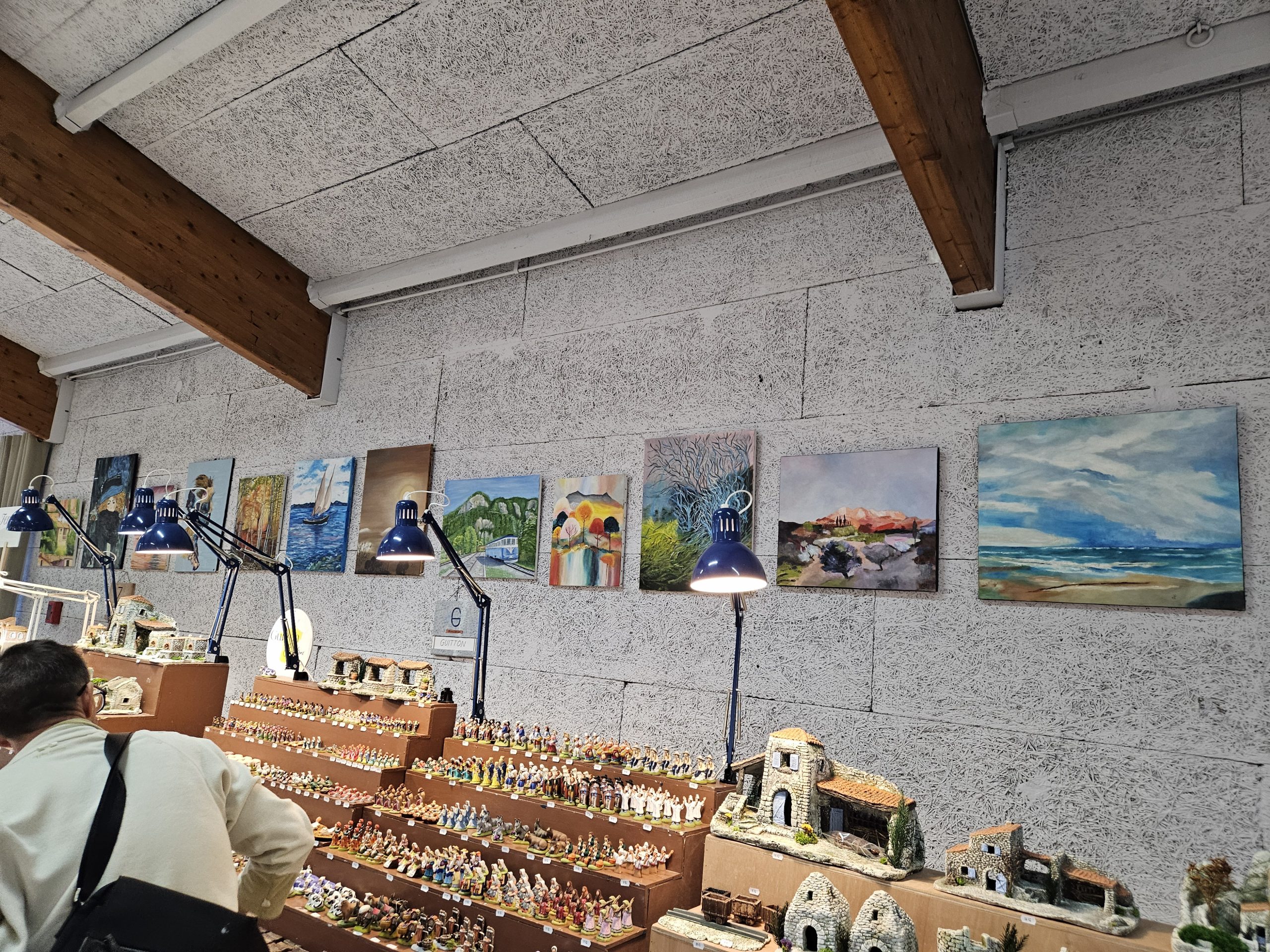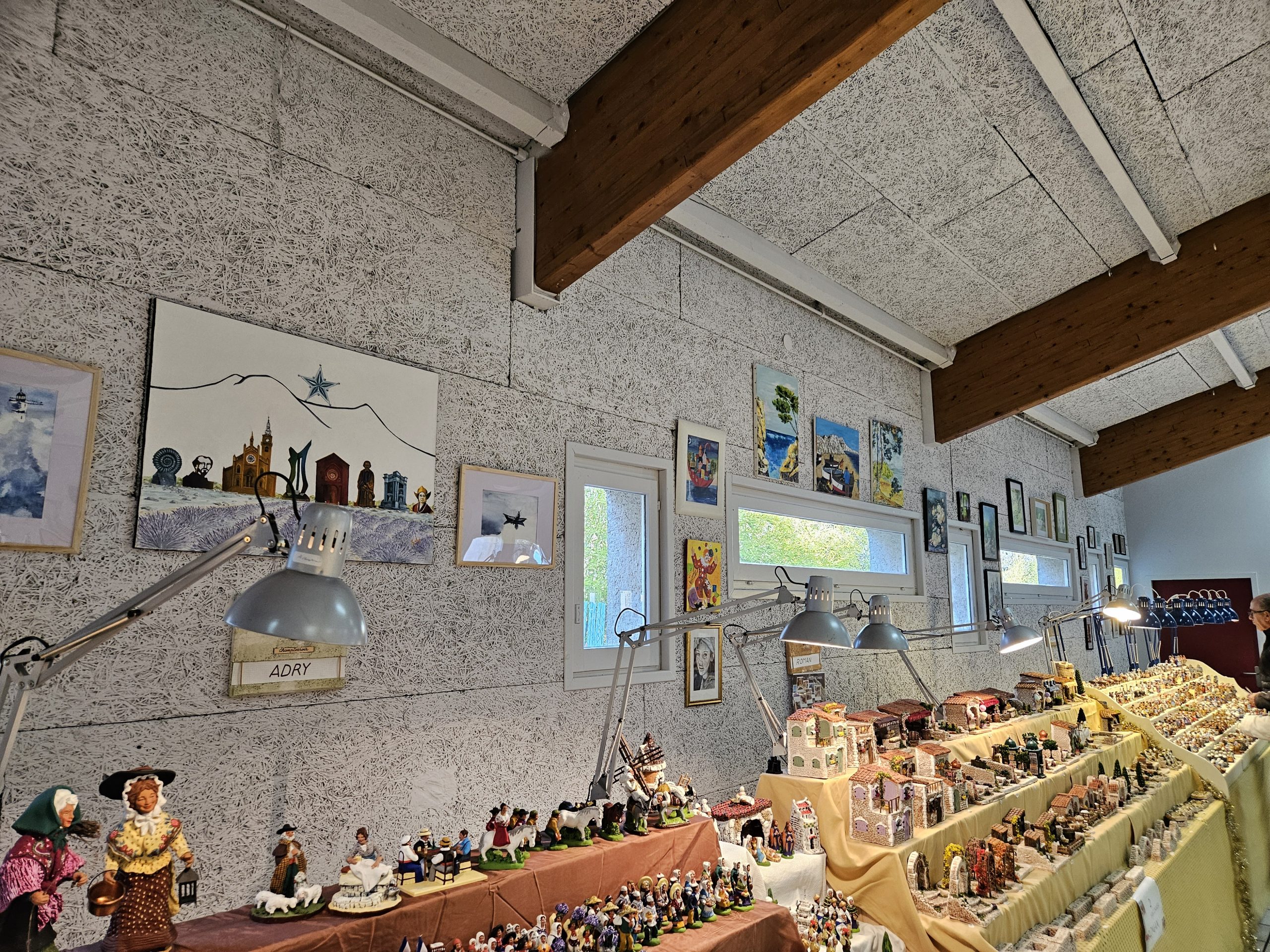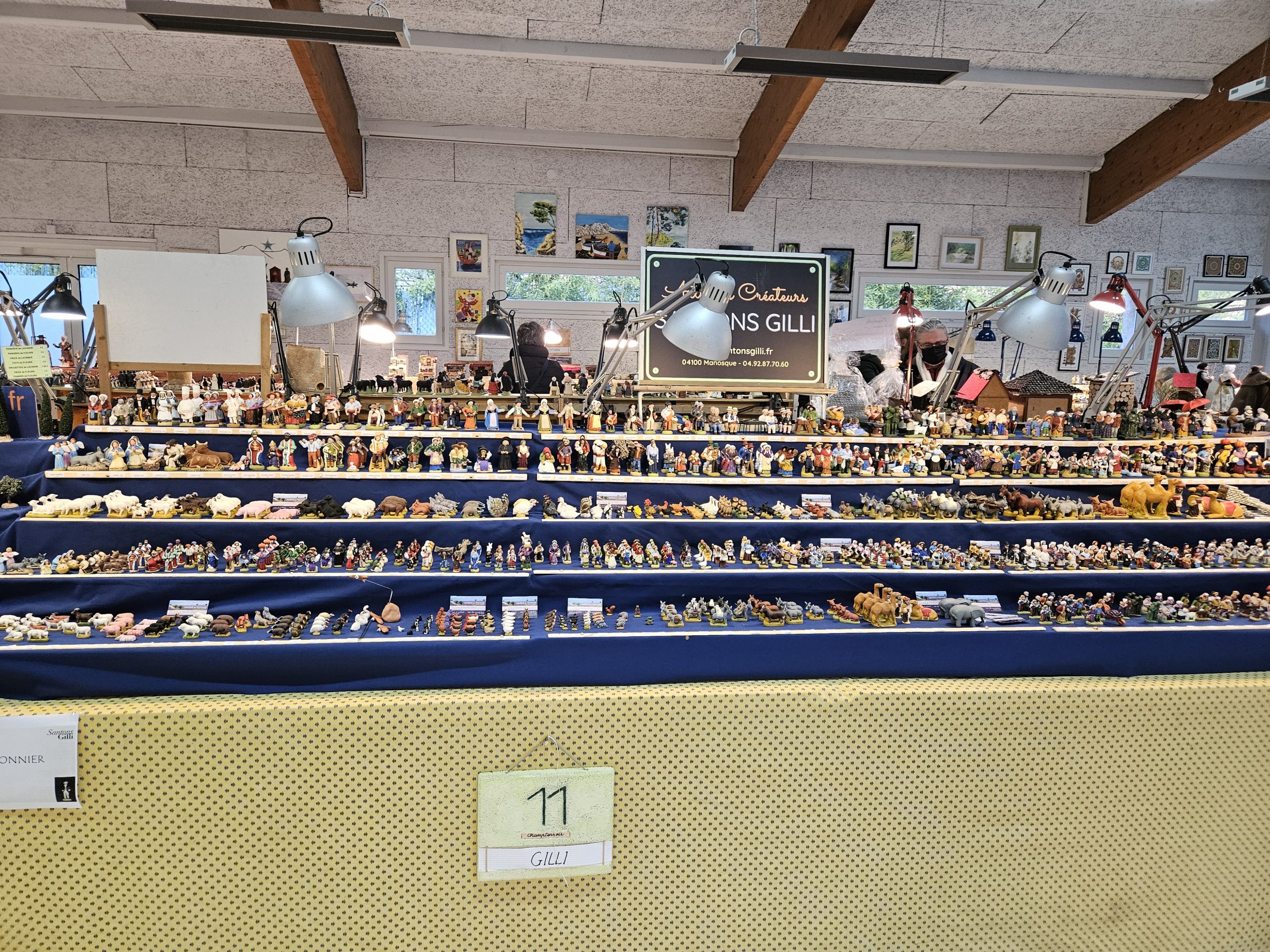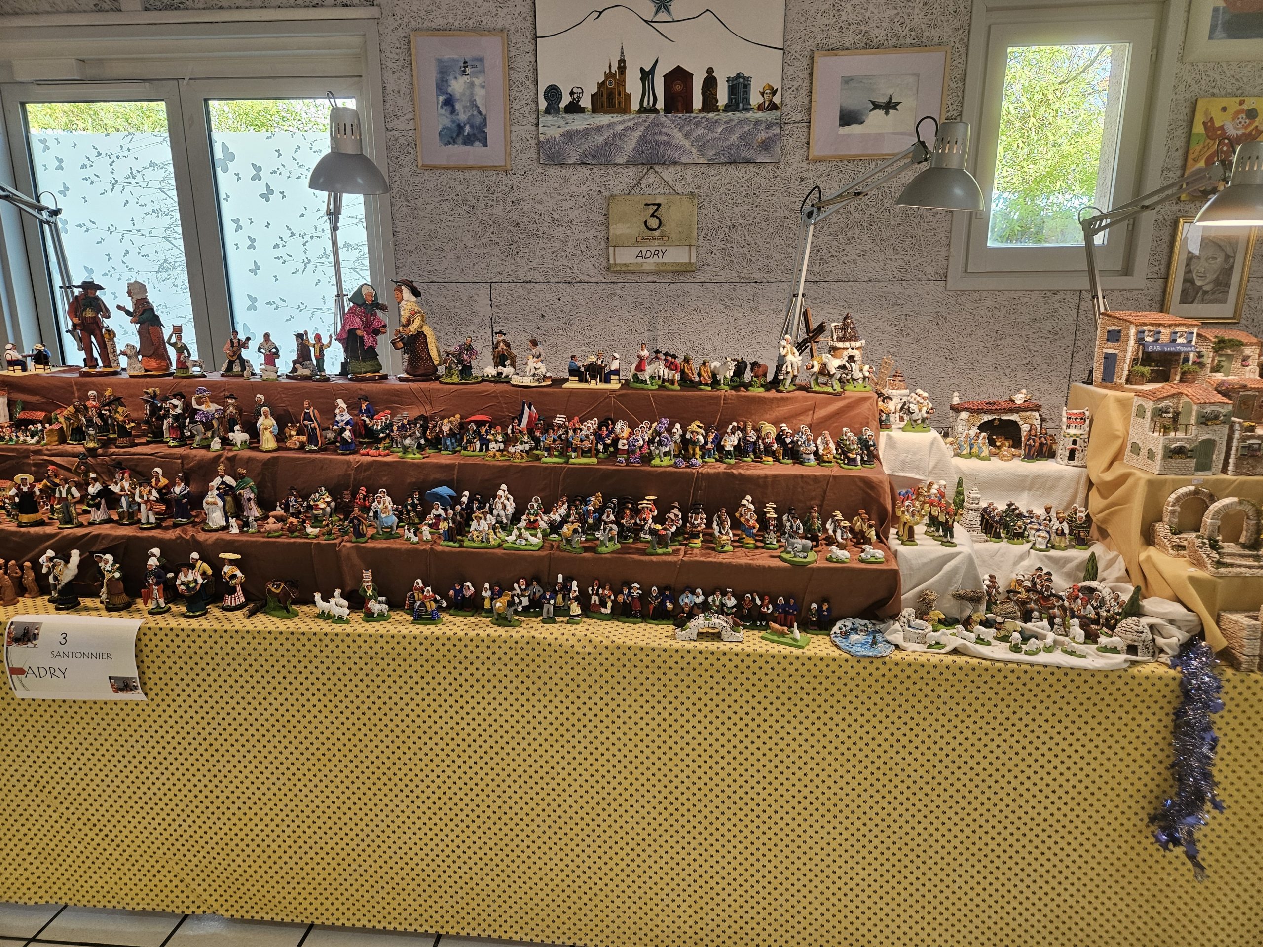 C‘est le jeudi que tout a commencé, avec la mise en place de la salle par les bénévoles de Champterroir et par des amis et sympathisants ( qu’ils soient tous remerciés pour leur aide précieuse) ; et le vendredi la salle était à disposition des santonniers pour installer leurs oeuvres sur les présentoirs. Petite alerte pourtant cette après midi de vendredi: la défection d’un santonnier, et donc modification de la disposition de certains stands, problème résolu par l’apport d’une « santonnière », Nathalie, qui sous le nom de « Nat’Urellement », a exposé ses réalisations qui ont attiré l’attention des visiteurs. La salle était donc prête pour l’ouverture au public le samedi.