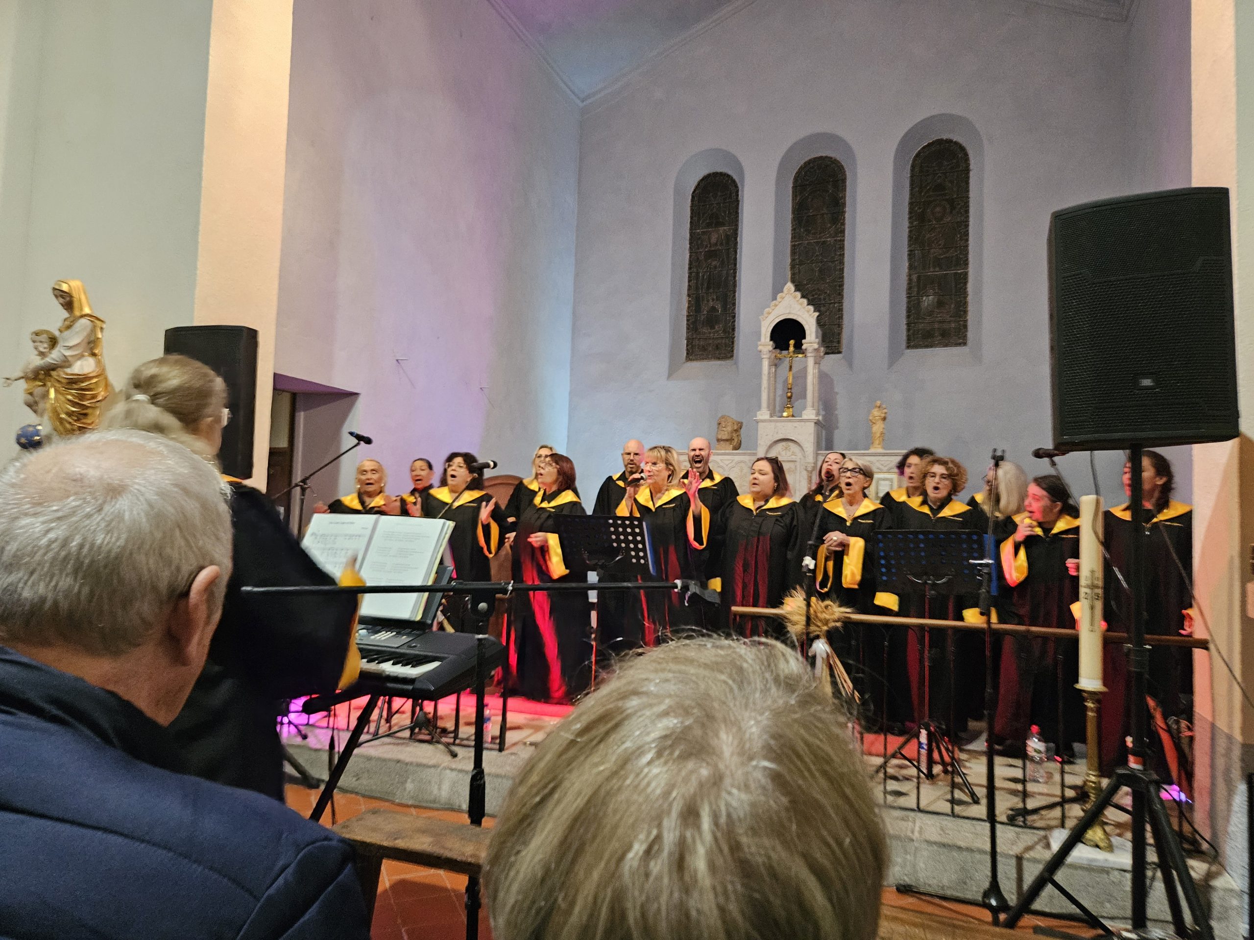 Et ce premier week-end allait connaître un succès spectaculaire, visiteurs nombreux, achats significatifs tout au long de ces deux journées qui annonçaient, sans doute la réussite de cette semaine du santon. Ce samedi allait se terminer en apothéose avec le concert du groupe « Gospel Flame », les amateurs de ce type de spectacle avaient répondu en nombre( l’église bondée) et ils n’allaient pas être déçus car la prestation offerte s’est avérée remarquable. L’ensemble des choristes a interprété les classiques du gospel, pendant 90 minutes, et la cheffe de choeur, malgré son problème de trachéite, a régalé l’auditoire avec son » Ave Maria » magistralement interprétée.